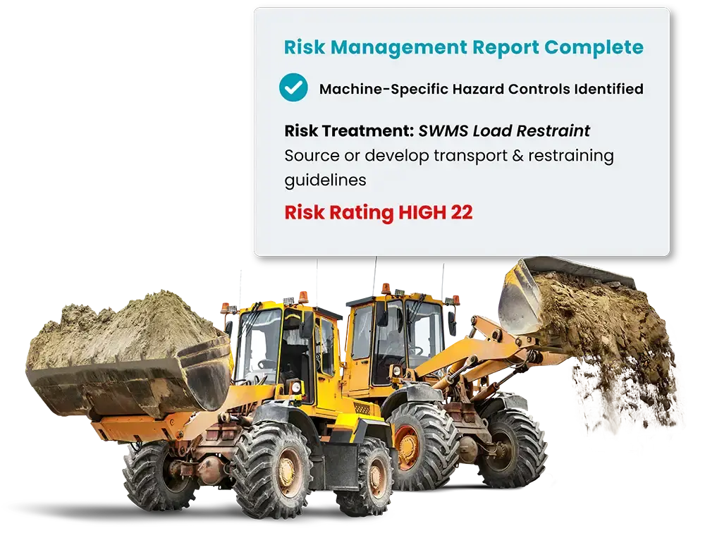 Once you’ve completed an Ideagen Plant Assessor risk assessment, you’ll receive an instant risk management report providing hazard controls that are relevant to your machine, reflect the latest updates to legislation and standards, and help satisfy your compliance and safety obligations.